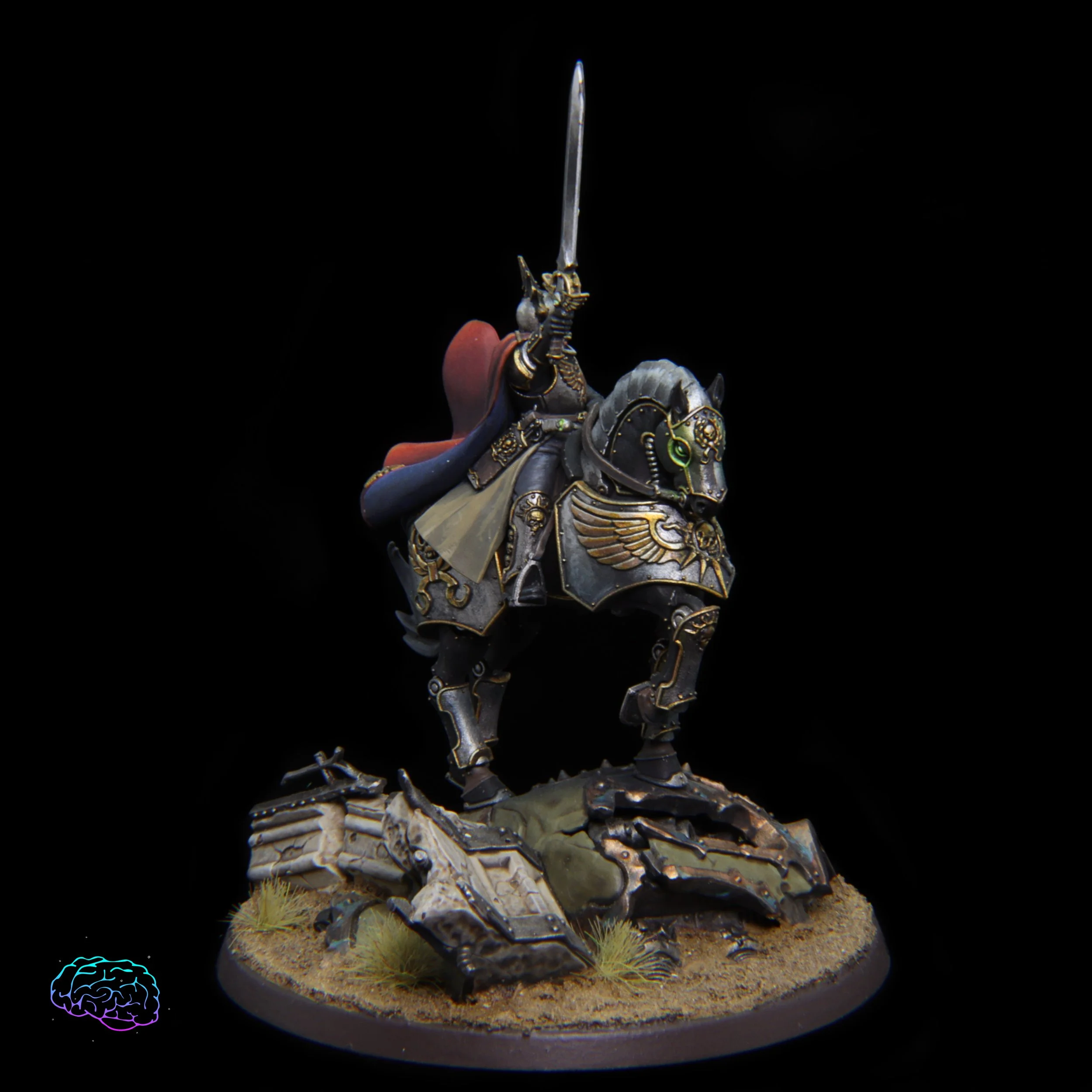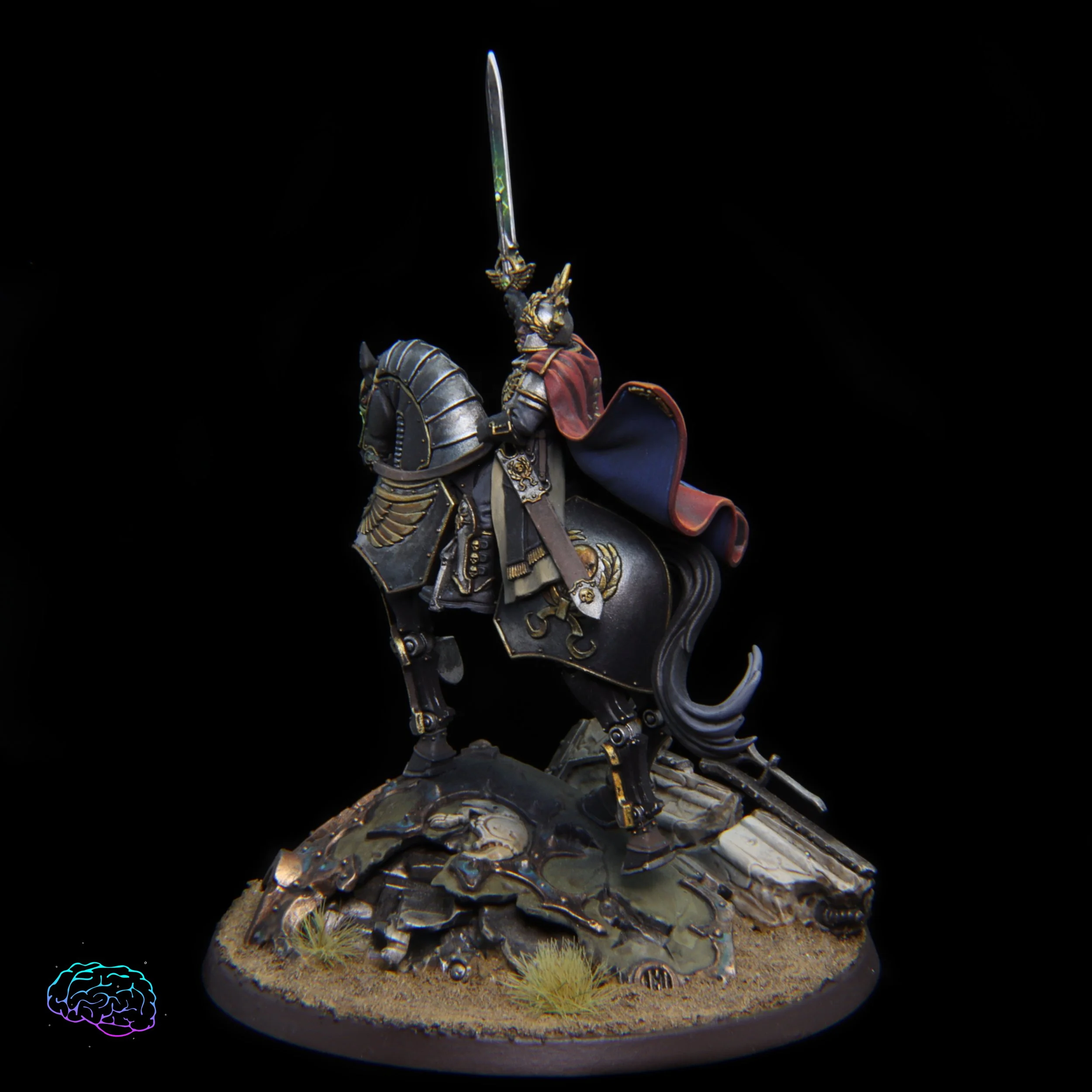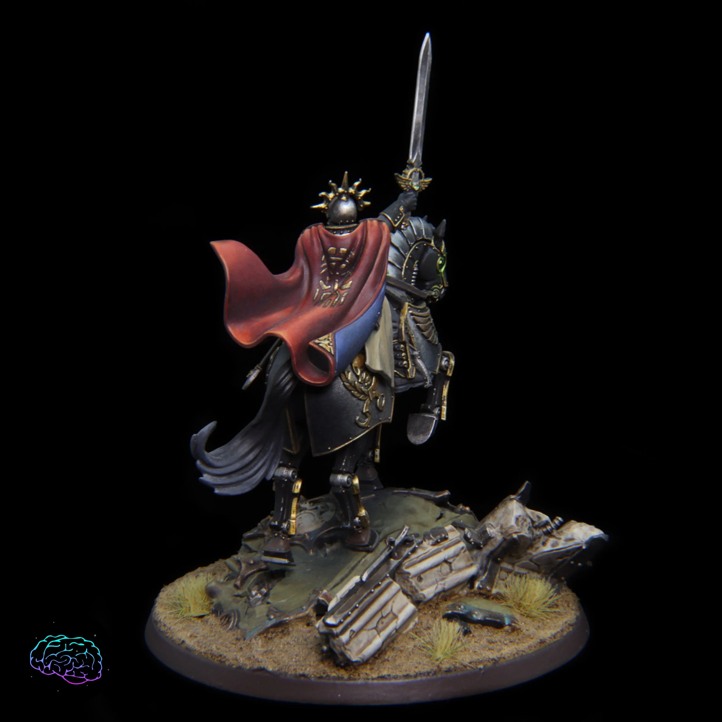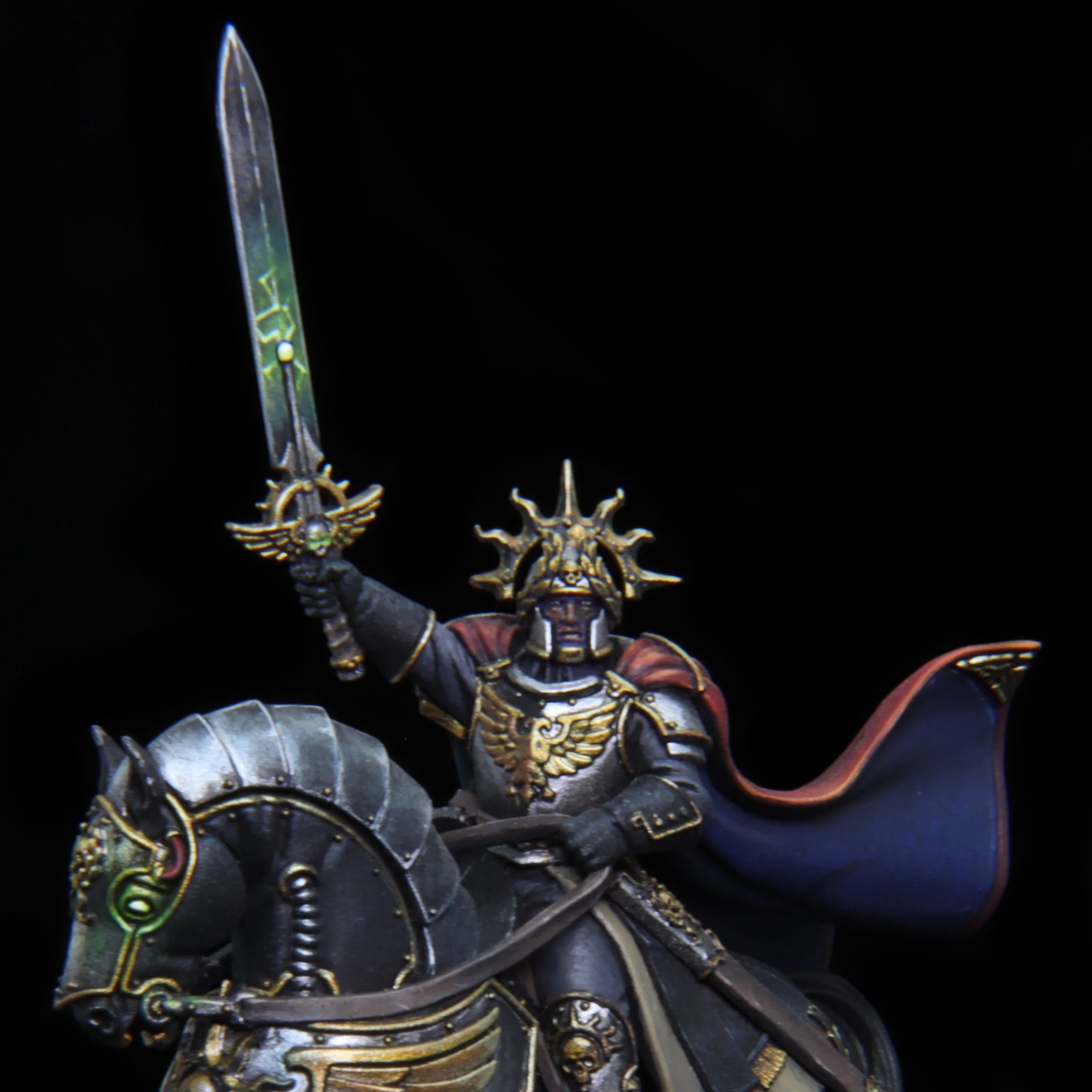 Here is a commission I did for a buddy’s Warhammer 40k army. One of my main priorities was to ensure that my paintjob vibed with the rest of his army which I feel like I succeeded in. Stoked on the subtle OSL of the horse eyes and how the sword came out. Also capes have been my nemesis in the past so I did my darndest to defeat my foe.