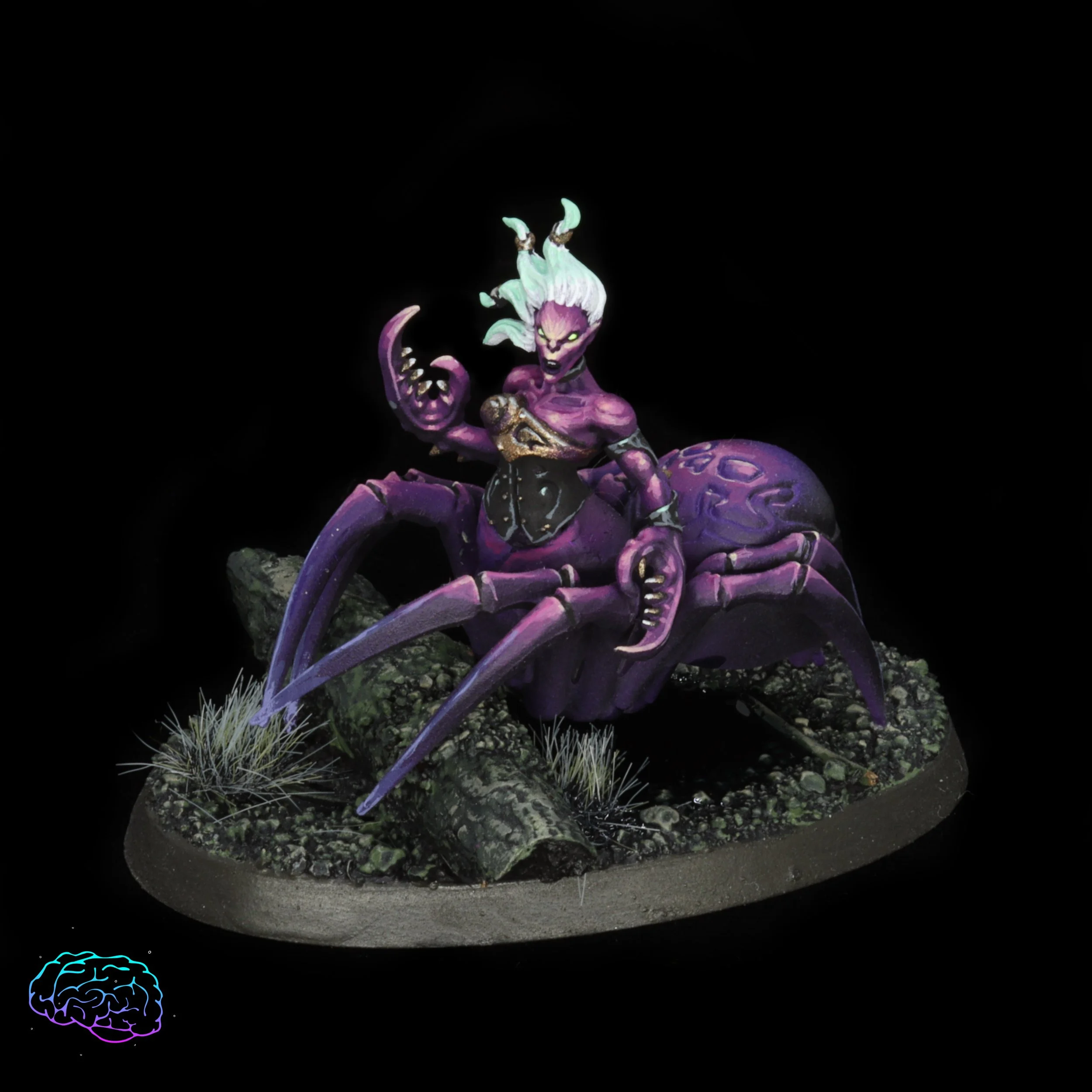 Inspired by Lloth and R.A. Salvatore, these are my converted seekers of Slaanesh for my chaos daemons army. Combining a box of daemonettes and a box of forest goblin spider riders. I tried to get more dynamism from their limbs so I bent the spider legs to add some more variety.